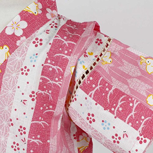 ガールズベビー浴衣|甚平[くろわっさんす べべ]ベビー甚平|上下セット|うさぎ 矢絣 桜柄|和柄(日本製生地)綿100%|女の子|女児 90cm ピンク