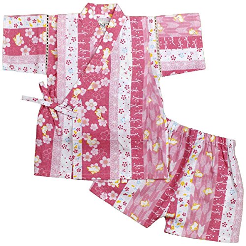 カラー : ピンク / ガールズベビーうさぎ 矢絣 桜柄・和柄甚平上下セット(日本製生地使用、中国縫製) / ・ 日本製生地使用 / ・ うさぎ 矢絣 桜柄の上下セパレートタイプの甚平 / ・ 肩口は千鳥掛けで涼しい / ・ 上着は内掛け、外掛け紐でカンタン着用 / ・ パンツはウェストゴム入り / ・ お祭りや花火大会だけではなく、普段着やパジャマとしても大活躍! / 綿 100%(日本製生地)