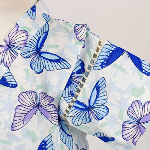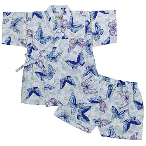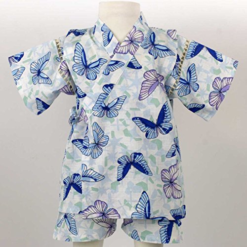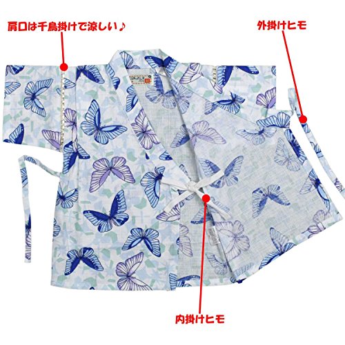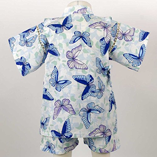 カラー : ホワイト-ブルー / ガールズベビーちょうちょ柄甚平上下セット(日本製生地使用、中国縫製) / ・ 日本製生地使用 / ・ ちょうちょ柄の上下セパレートタイプの甚平 / ・ 肩口は千鳥掛けで涼しい / ・ 上着は内掛け、外掛け紐でカンタン着用 / ・ パンツはウェストゴム入り / ・ お祭りや花火大会だけではなく、普段着やパジャマとしても大活躍! / / ※同柄・キッズ・ジュニアサイズ(同形)もあります。姉妹でおそろいいかがですか? / ・ キッズサイズ:品番【9003】(別売り) / ・ ジュニアサイズ:品番【9035】(別売り) / 綿 100%(日本製生地)