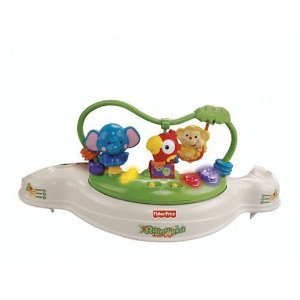 Hours of safe jumping fun (which will activate rainforest music and lights), and now there are toys all around the rainforest-and overhead-with a spinning seat that helps baby explore them all.