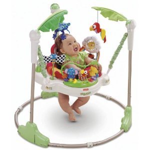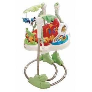 - Baby jumper's colorful Rainforest toys and fun music stimulate your child's visual and auditory senses