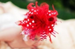 クリスマスレッドドット×ふわふわファー☆のヘアクリップピン付ヘアバンド・ヘッドバンド