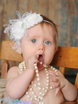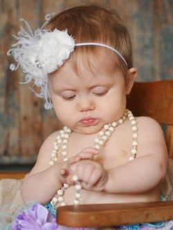 ホワイトシャビーローズと ダチョウファーのゴムヘアバンド 【セミオーダー】 [Baby Product]