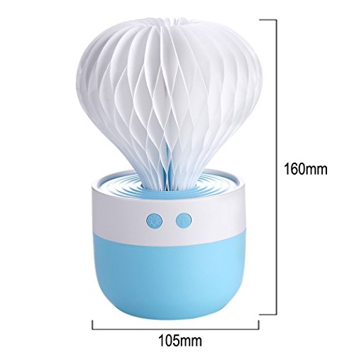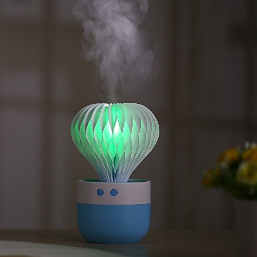 超音波式卓上加湿器 サボテン型空気清浄機 アロマディフューザー 150ml大容量 強力スチーム 加熱式 約12畳 USB給電 8時間連続静音加湿 除菌消臭&空焚き防止 7色LED搭載 1年の保証期間 (青)