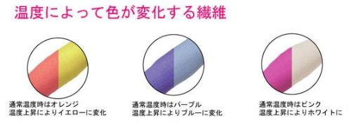 繊維自体の温度変化を、カバーの色が変化してお知らせ。 ※商品は「パープル」