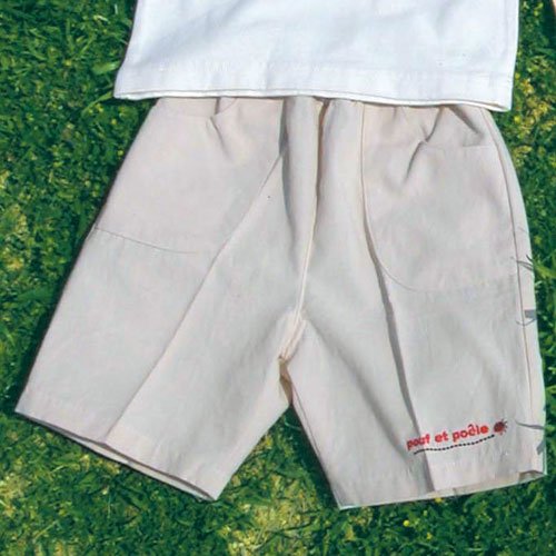 pouf et poele 5分丈パンツダンガリー (ベージュ) 110cm (プフ エ プワル) 【日本製】