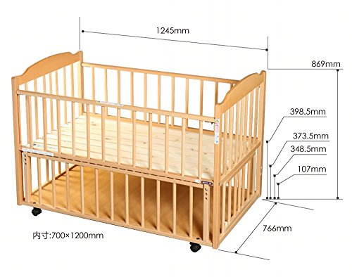 敷布団を敷いた場合、敷布団の上と下げた手すりがフラット(ほぼ同じ高さ)だから、赤ちゃんの着替え、おむつ交換するのに柵が邪魔になりません。(床板上段で使用の場合)