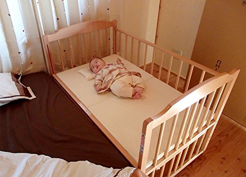 両側の柵が開閉できるので、パパ、ママのベッドでベビーベッドをはさんで使用できます。