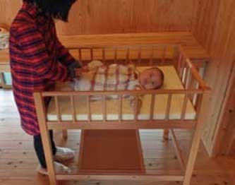 おむつ替えしやすいように手前側は常にオープン。