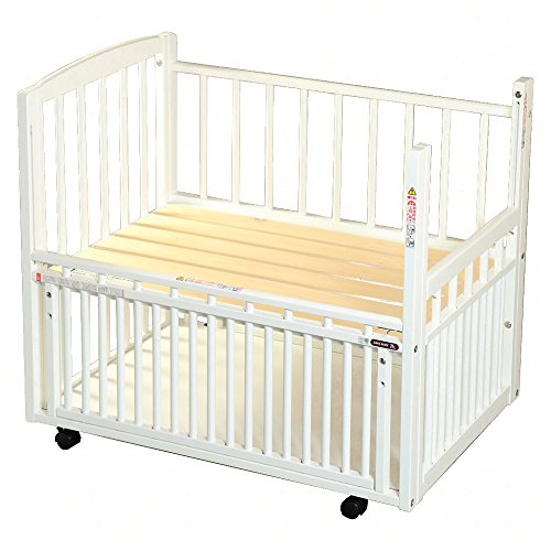 敷布団を敷いた場合、敷布団の上と下げた手すりがフラット(ほぼ同じ高さ)だから、赤ちゃんの着替え、おむつ交換するのに柵が邪魔になりません。(床板上段で使用の場合)