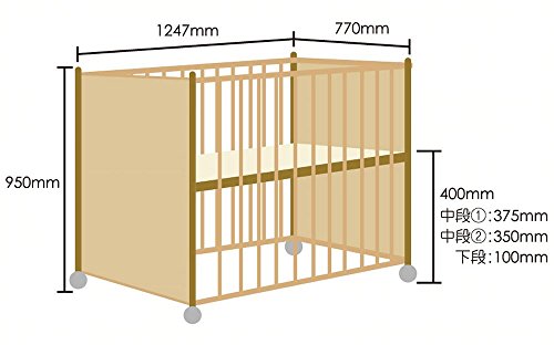 ※実質、寝台の高さは2段階となります(上3段は高さ調節用の為)。赤ちゃんがつかまり立ちを始めたら最下段(床から10cm)でご使用ください。