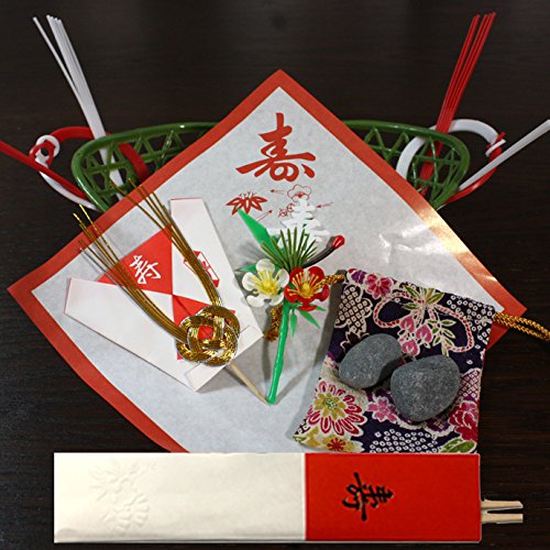 お食い初め 鯛かご 飾り セット(竹) 歯固め石 巾着 説明書付き ( お食い初め 石 はがため石 百日祝い )(かご大(8寸)鯛800~1kg用)