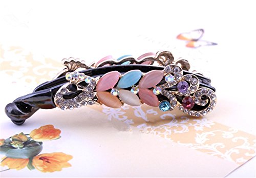 【爱莉セレクトショップ】髪が多い人向け ラインストーン付き大き目バナナクリップ 髪留め しっかりホールド レディース (1#)