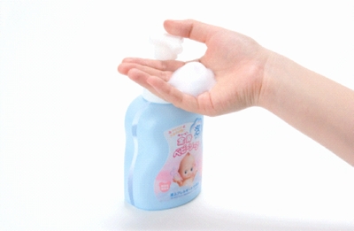 泡で出てくるので、赤ちゃんを抱っこしたまま片手で洗えます。