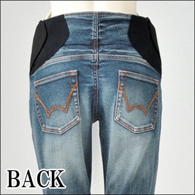 【犬印】産前用パンツ・EDWINコラボレーション ~Miss EDWIN~ベリーフィット仕様・テーパードパンツ ユーズド加工のヴィンテージ感溢れるボーイズライクな テーパードシルエット。フルレングス使用、 ロールアップ着用もどちらもおススメ!です。 カプリ丈ぐらいにロールアップして着用すると夏でも おススメのアイテムに変身します!! 両サイドの調節機能部分によりサイズの調節が簡単にでき、 妊娠初期~後期まで大きくサイズ変更するおなか・ ボディラインにフィットします。 バックフィットギャザーにより、腰に沿うようにフィット効果抜群の 立体シェイプ構造を仕様!