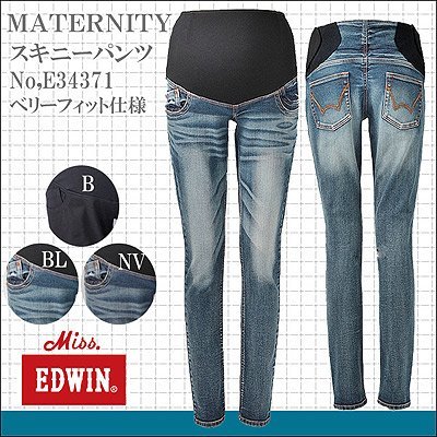 【犬印】産前用パンツ・EDWINコラボレーション~Miss EDWIN~ベリーフィット仕様・スキニーパンツ E34371 (マタニティM, ブルー(BL))