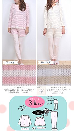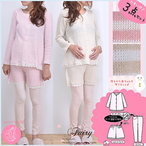 犬印本舗 INUJIRUSHI Fairy あったかニット マタニティルームウェア3点セット(カーディガン・ショートパンツ・レギンス) (ピンク系)