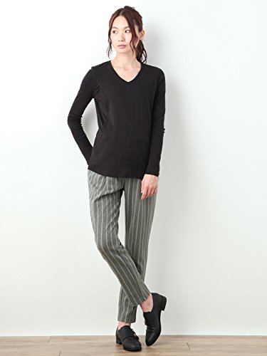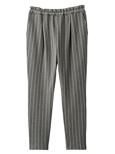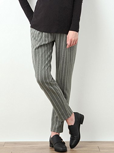 犬印本舗 Fairy フェアリー マタニティ ストライプ 九分 丈 タック パンツ 産前 産後 対応 妊婦服 アジャスター調節可 M グレー × オフ