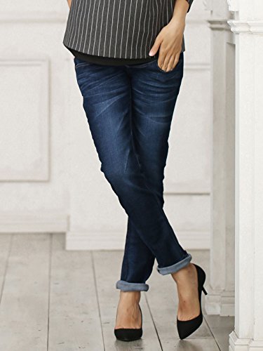 Miss EDWIN マタニティ ガール フレンド デニム パンツ フロント クロス 妊婦服 ジーンズ アジャスター調節可 仕様 M ネイビー