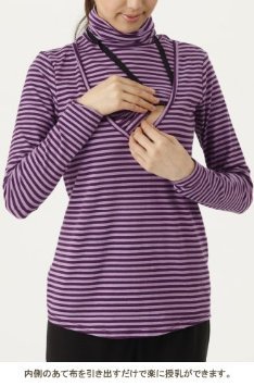 犬印本舗 Fairy フェアリー ハーフ トップ 内蔵 タートル ネック ( 授乳 ストラップ 付 ) L パープル