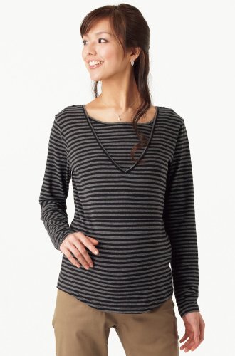 犬印本舗 Fairy フェアリー ハーフ トップ 内蔵 V ネック 長袖 トップ ( 授乳 ストラップ 付 ) L パープル