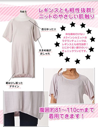 体を締め付けないAラインシルエットのラグランチュニックは、レギンスとも相性抜群!とにかく使い勝手のいいチュニックワンピです。妊娠初期から臨月まで着れる便利なマタニティウェア。