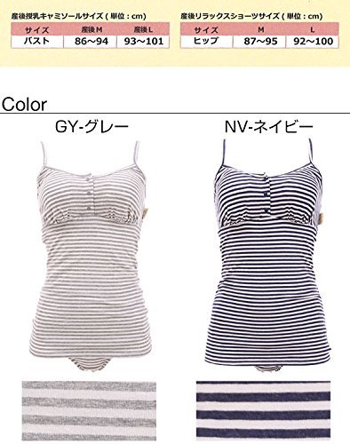 犬印本舗 産後ママの為の授乳キャミソールセット ボーダー柄 (Lネイビー)