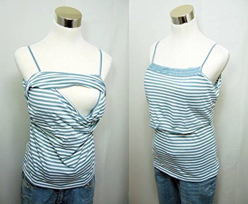 犬印本舗 1枚着できる 授乳キャミソール フロントレース サックスボーダー (4L)
