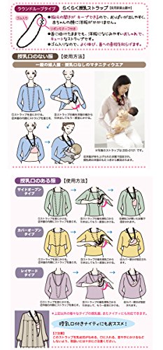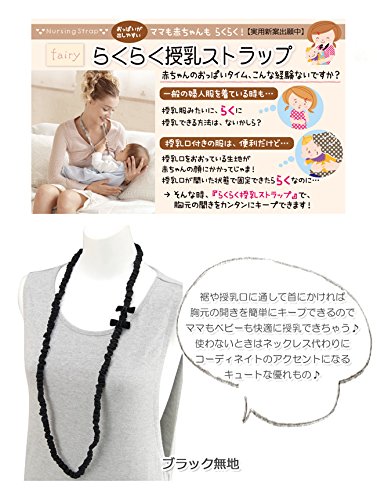 ママも赤ちゃんもらくらく! おっぱいが出しやすい「らくらく授乳ストラップ」 <ラウンドールタイプ> モニターママにも大人気のお洒落な授乳ストラップの登場! 胸もとの開きがキープできるので、おっぱいが出しやすく 赤ちゃんの顔に洋服がかかりません。 首に掛けたままでも、洋服になじみやすい、 おしゃれでキュートなストラップはリボンがポイント!! ゴム入りなので、よく伸び、首への負担を和らげます