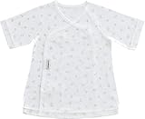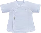 肌触りの良いフライス素材で、やさしいボーダー柄にかわいいワンポイントが入った短肌着は、外側は着脱簡単なマジックテープ(R)開きで、赤ちゃんの肌に直接縫い目が触れないよう縫い目は全て表側にしています。