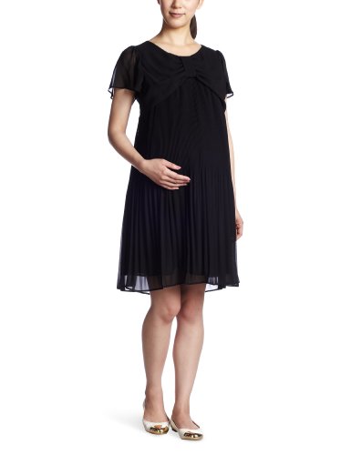 ELLE 授乳口付ワンピース 9 ブラック プリーツシフォン EL001504