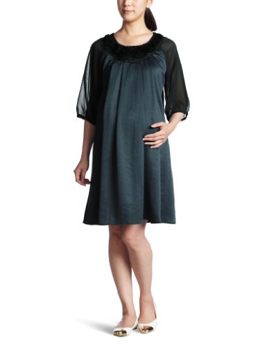 ELLE 授乳口付ワンピース ML グリーン ヴィンテージサテンシフォン EL008525