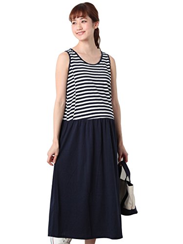 犬印本舗 Fairy フェアリー マタニティ 授乳口 付 リラックス マキシ ワンピース 妊婦服 M ~ L ネイビー ボーダー