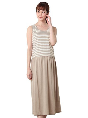犬印本舗 Fairy フェアリー マタニティ 授乳口 付 リラックス マキシ ワンピース 妊婦服 M ~ L ベージュ ボーダー