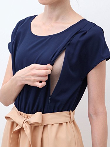 犬印本舗 Fairy フェアリー マタニティ ワンピース 授乳 口 付 バイ カラー ワンピ 妊婦服 産前 産後 お宮参り M ~ L ネイビー
