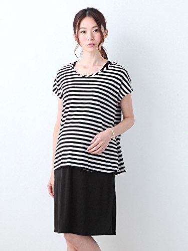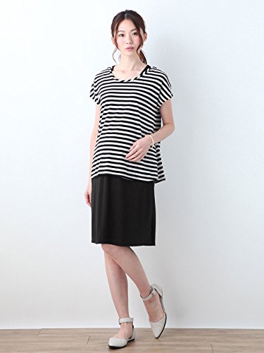 犬印本舗 Fairy フェアリー マタニティ ワンピース 授乳口 付 授乳 ケープ トップス × ショート 丈 ワンピ セット 妊婦服 産前 産後 半袖 M ~ L キナリ ボーダー