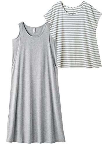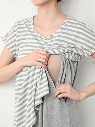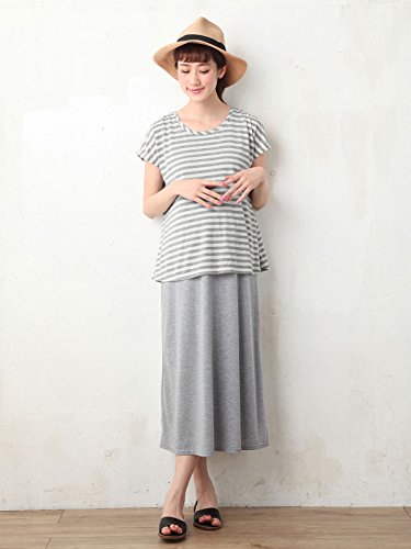 犬印本舗 Fairy フェアリー マタニティ ワンピース 授乳口 付 授乳 ケープ トップス × マキシ 丈 ワンピ セット 妊婦服 産前 産後 半袖 M ~ L グレー ボーダー