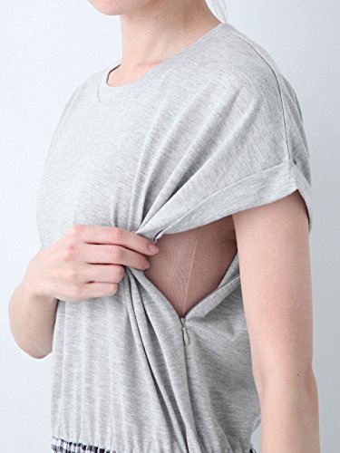犬印本舗 Fairy フェアリー マタニティ 授乳口 付 異素材 切替 ワンピース 妊婦服 産前 産後 M ~ L グレー