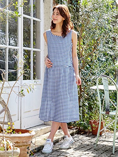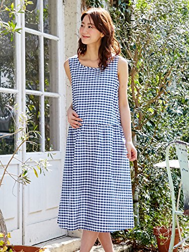 犬印本舗 Fairy フェアリー 授乳 口 付 コットン チェック ワンピース M ~ L ブルー