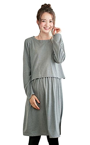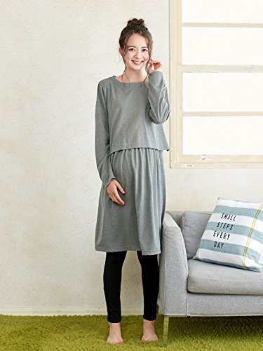犬印本舗 Fairy フェアリー マタニティ ワンピース 授乳口付き 添い乳 らくちん ワンピ 妊婦服 産前 産後 M ~ L グレー21577 21577102