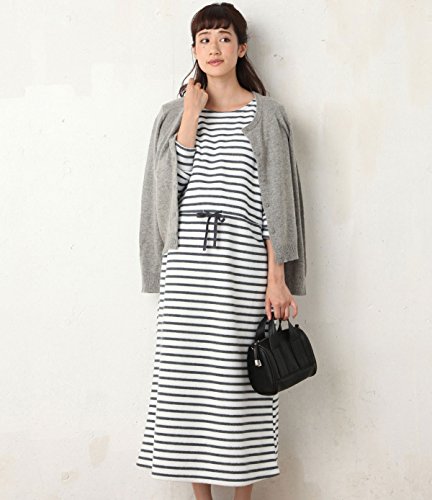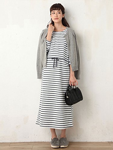 犬印本舗 Fairy フェアリー 授乳 口 付 裏 起毛 ブラウジング マキシ ワンピ M ~ L グレー ボーダー