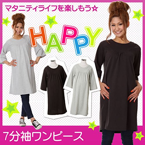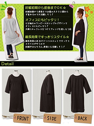 七分袖丈のワンピースはシンプルデザインでオフィスにもピッタリ!縦長効果のあるAラインシルエットですっきりスタイルが叶うので妊娠中はもちろん、産後にも活躍しそう!フリーサイズ