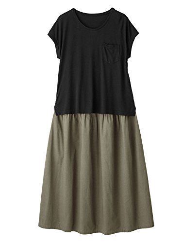 - ●【ゆるてろトップスとキレイめスカートを組み合わせたようなコンビデザイン】レーヨン混の天竺素材は、やわらかな肌触りで着心地も抜群です。素材の落ち感をいかしたシンプルなデザインで、シンプルなのにエレガントな印象に。スカート部分は厚めの綿素材できちんと感があります。
