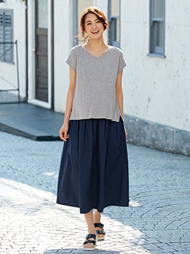 - ●【ゆるてろトップスとキレイめスカートを組み合わせたようなコンビデザイン】レーヨン混の天竺素材は、やわらかな肌触りで着心地も抜群です。素材の落ち感をいかしたシンプルなデザインで、シンプルなのにエレガントな印象に。スカート部分は厚めの綿素材できちんと感があります。