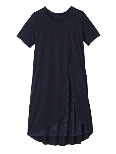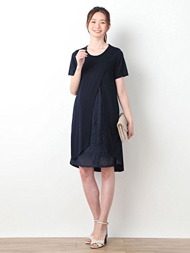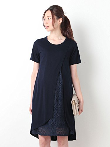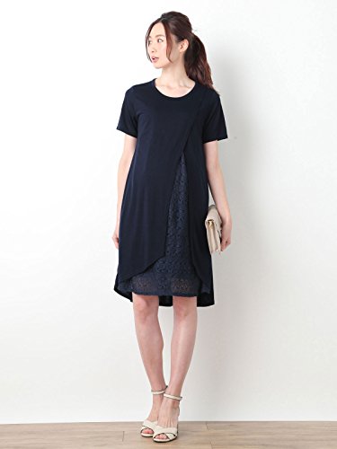 犬印本舗 Fairy フェアリー マタニティ ワンピース 授乳口付き レース アシンメトリー ワンピ 妊婦服 産前 産後 半袖 M ~ L ネイビー 21886 21886302