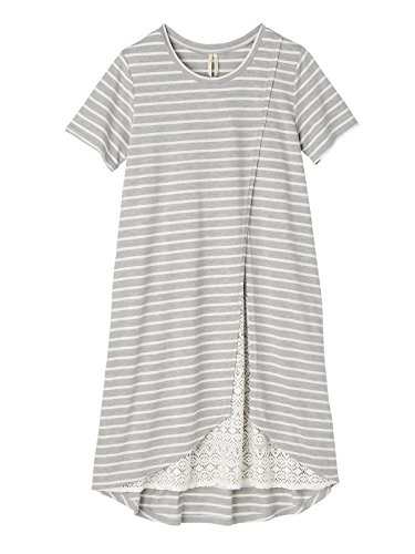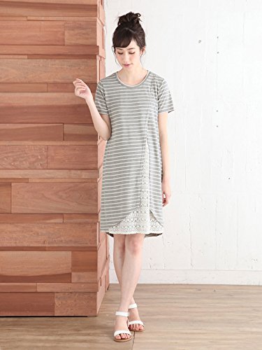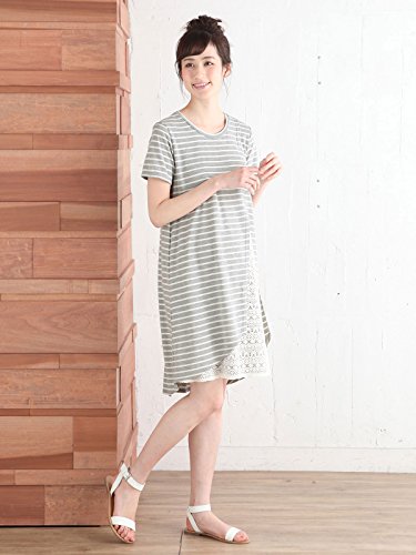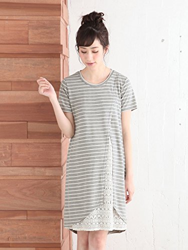 犬印本舗 Fairy フェアリー マタニティ ワンピース 授乳口付き レース アシンメトリー ワンピ 妊婦服 産前 産後 半袖 M ~ L グレー ボーダー 21886 21886102