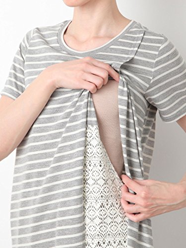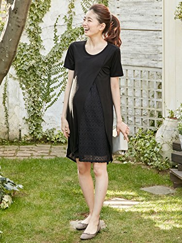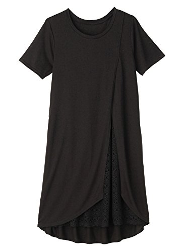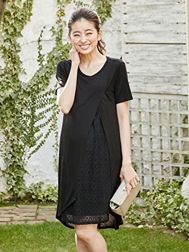 犬印本舗 Fairy フェアリー マタニティ ワンピース 授乳口付き レース アシンメトリー ワンピ 妊婦服 産前 産後 半袖 M ~ L ブラック 21886 21886202