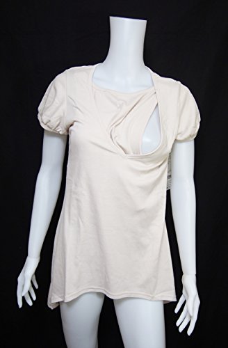 犬印本舗 授乳口付 半そでVネックチュニックM~L キナリ