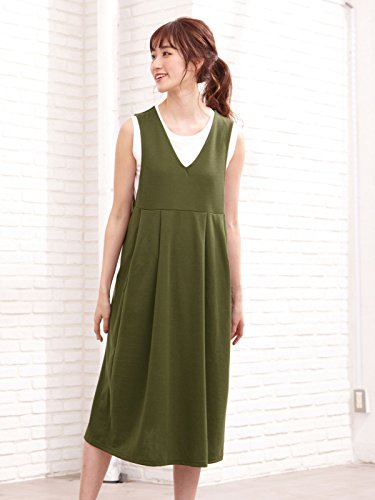 犬印本舗 fairy フェアリー マタニティ ワンピース 授乳しやすい サイド カシュクール ジャンスカ 妊婦服 産前 産後 ジャンパースカート M~L カーキ 22665 22665302