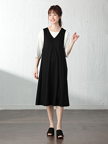 犬印本舗 fairy フェアリー マタニティ ワンピース 授乳しやすい サイド カシュクール ジャンスカ 妊婦服 産前 産後 ジャンパースカート M~L ブラック 22665 22665102